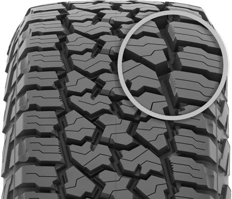 트레드에 적용된 넓은 개방형 홈 구조는 부드러운 노면을 효과적으로 물고 빠져나오며, Cooper의 3D 사이프 기술은 주행 안정성을 향상시켜 거친 환경에서도 안정적인 견인력을 제공합니다.